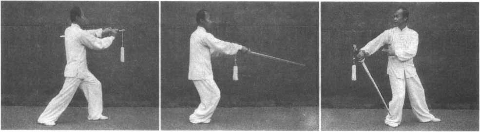 太极十三势剑法:劈、点、云、抹、抽(洗)、斩、提(格)、拦、挂、托、