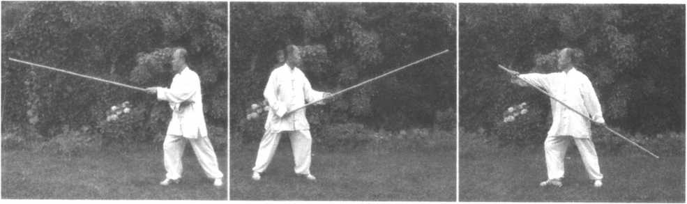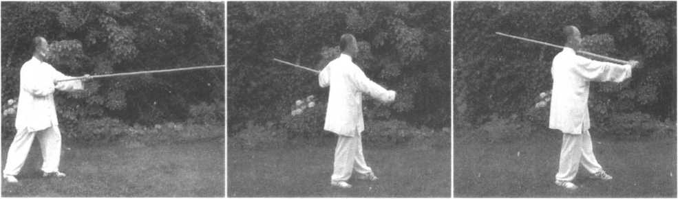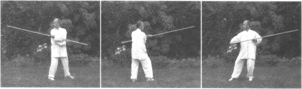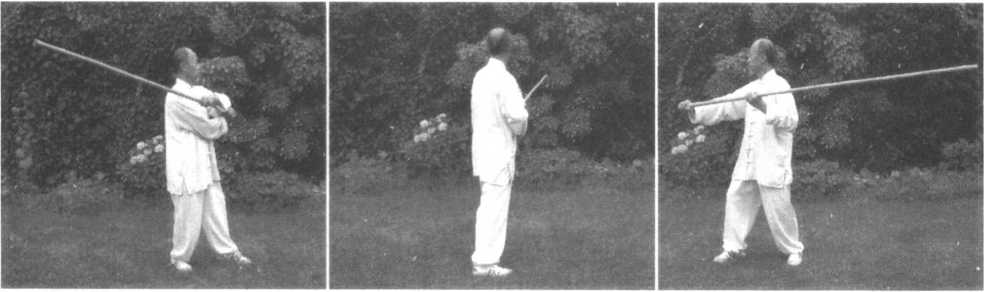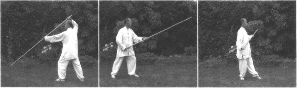 55.抱月撩杆 56.左撤步挂杆