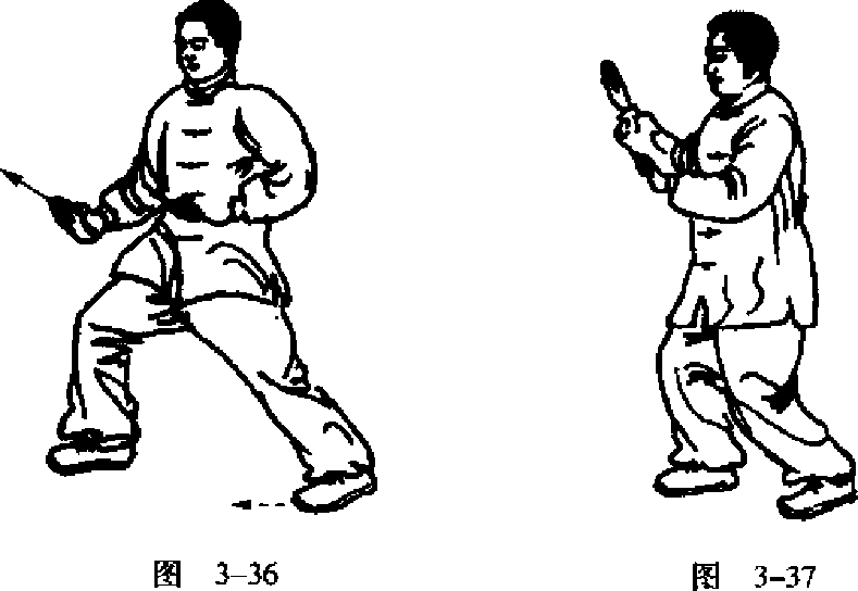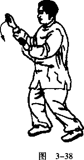 成五行桩式(图3-37 )o如此一步一步 向前行走,反复练习10~30分钟口
