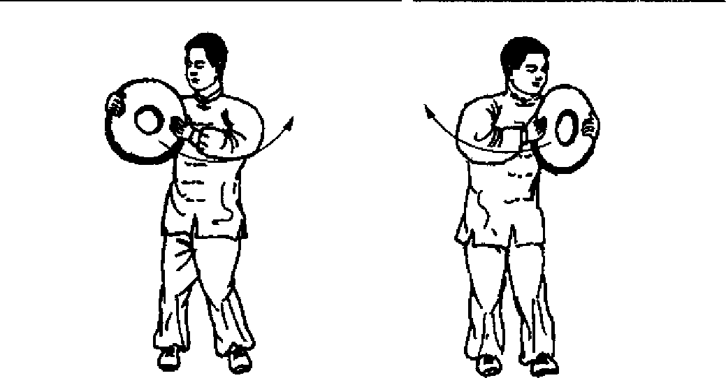 (-)平推重物以中桩体位站立,双手持 重物于胸前,向前推举,然后 收回反复练习至两臂不能坚持 为止(图3-68 )口(二)持物摇摆图 3-68图 3-68以中桩体位站立,双手持 重物于胸前,上体转动,随转 体,两手持重物向左右摇摆, 反复练习至不能坚持为止(图图 3-68图 3-68 3-69. 70 )o图 3-69 图 3-70