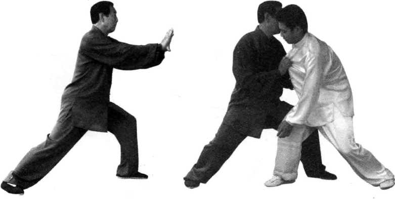 (3)侧肩靠是建立在惊闪基础上来完成的,望演练者在实践中 详加体察。
