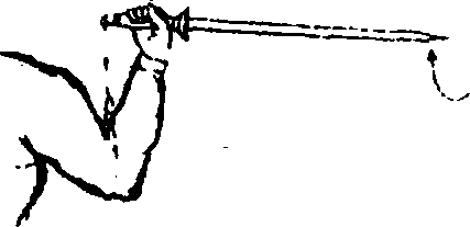 :立剑,剑身平置,由下向上为托。手心向里,腕与头平, 劲贯剑身中部(图346)o
