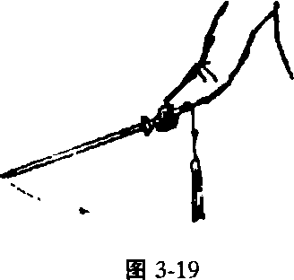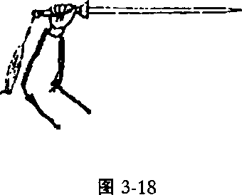 穿剑:立剑,剑贴身向下弧形运动,劲达剑尖(图3-17)o