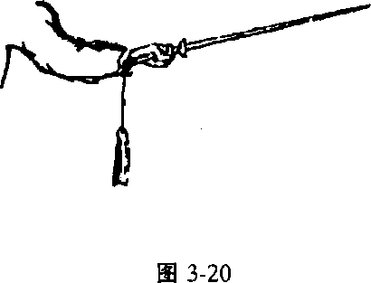 抹剑:平剑,剑从一侧经体前弧形向另一侧回抽为抹,高度在 胸腹之间,劲贯剑身(图3-20) o