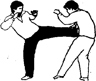 5上动不停我就势抢步进身以左腿踹击敌腹