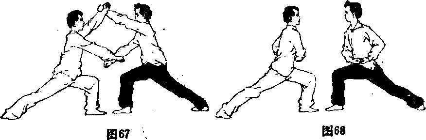 甲右前臂,拳眼向上多目视右拳(图69)。