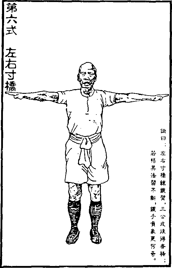 诀日:左右寸桥练铁臂,三公成后停者稀;