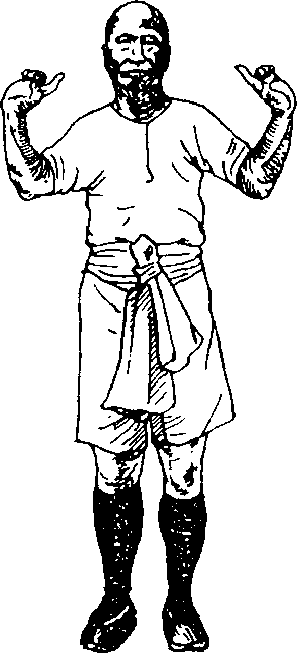 欲使手桥似铁,全隹练此标指之劲°初练时空膂而发,继 则以沙包缚臂,初仅三五斤,渐而加至百斤,最后双臂能承重 五百斤以上,便告功成"