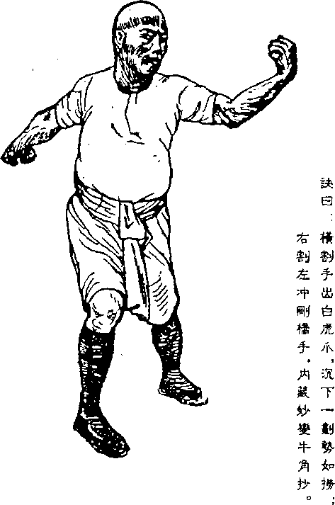 【要旨】两拳成夹击之势,口发“唔”声。