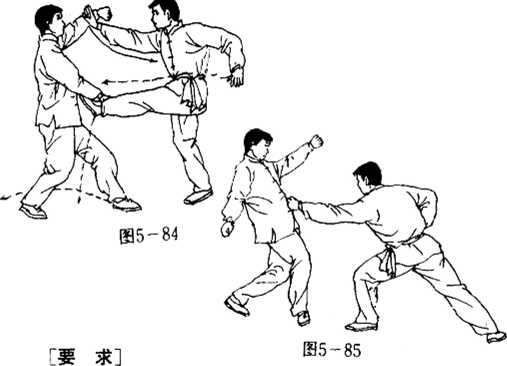 此组动作均是左右手或一攻一防,或同时并进,其重要的 --点是借助于拧腰切胯的腰错力,增大劲力和速度。拧腰切胯 是通背动作的要典,举手抬足之间均应牢记。
