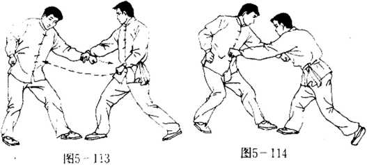 (2) 双手捋带敌曾,应以左手控制敌肘关节,右手使鹰爪 力扣拿其腕。