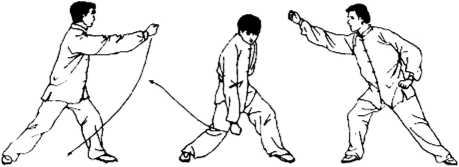 [要点]腰背要松,肩管要活,手臂努力溜长、探够;向 右摆起时要配合伸肩发力钻拳。