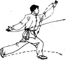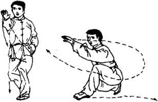(1) 抡劈时,左臂前抡领劲,右臂后留,身体展开,然后合 腰前劈,力量才大。