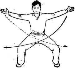 要点:抡臂劈掌时,应以肩为轴划立圆:肩、肘、臂均应 自然放松,不要紧张;手、眼、身、步配合一致,力求轻灵圆 活,防止僵肩硬项,身钝步滞。