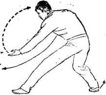 左手内旋(握拳)屈肘经胸前向下,至左膝上方,拳心