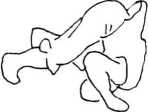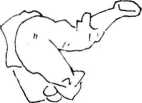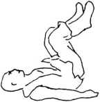 站立势始,身体后仰,左腿于体前用力蹬ttl,两手分开, 推向地面,臀部、背部先着地,两腿上举,向后滚动翻转。注 意含胸收腹,下颌内收,肘尖不能碰地(图169、170)。
