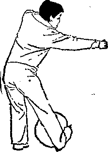 1.将实心沙球放在地上,用勾踢将球踢起。10余次 一组(图 8 — 4)。