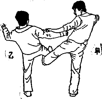 5 .甲用各种勾踢攻击乙,乙后退防守。二人互换练习。