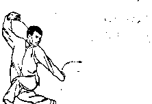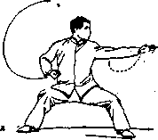 左拳变掌屈肘向上摆动时,肘要向左腰侧内夹,使左掌 的摆动弧缩小,便于左掌向左侧快速扎出。
