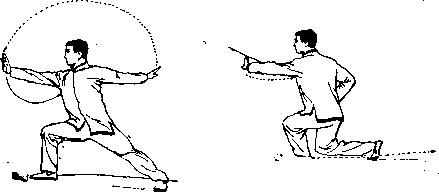 以上三个动作要不停顿地连续完成。运臂穿掌要轻松柔 顺,肩要松沉。
