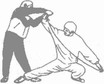 乙在撤步的同时左手从甲右手中挣脱速拿住甲之左手手指。左手动作必须迅速有力拿指要准。