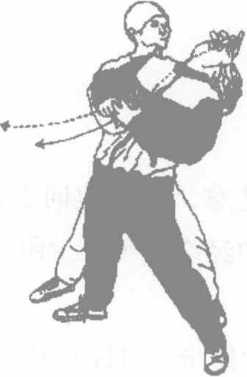 右臂下松左臂摆向左侧目视右手(图8-22)。
