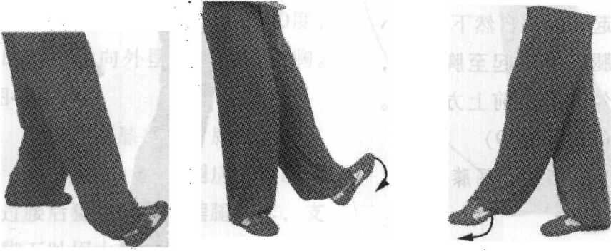 (1)上步:后脚经支撑腿向前迈出,脚尖略外撇,脚尖或 脚跟着地。(图22、图23) ?