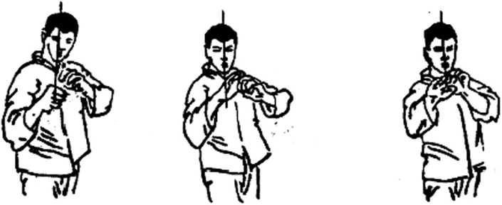 截拳道指法主要内容是前手插指,如图295、296。前手插