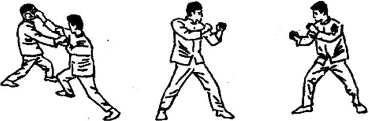 且动作幅度小。同时,我将防卫之手 保持在一定的高度上,以阻截对手 的攻击,如图311。