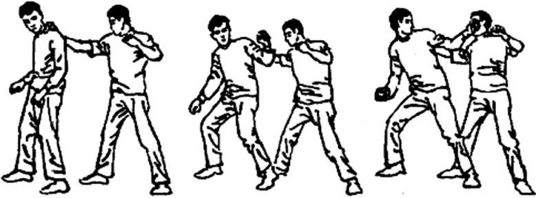 对手突然从背后抓住我,我在其采取进一步动作之前,侧 身快速以翻背拳击其面部,如图1161?1163。