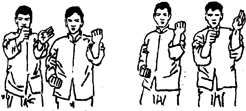 这种技法应是肘部几乎不动,仅用手和前臂的动作来完 成。它不象劈打或抽打动作的幅度那样大,这是因为手的任何 过分的动作都会使自身暴露,从而遭到对手的攻击。换句话 说,手的动作应该恰到好处,只要足以挡住或控制住对手的打 击就可以了 O