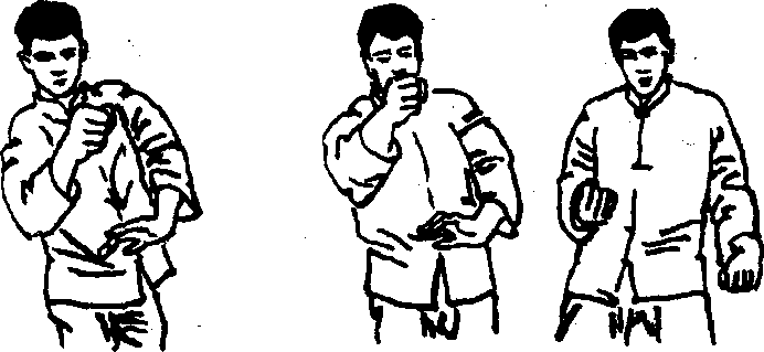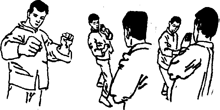 若对付踢击之类的重击,则要握紧拳头格挡,如图640。