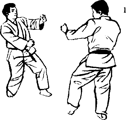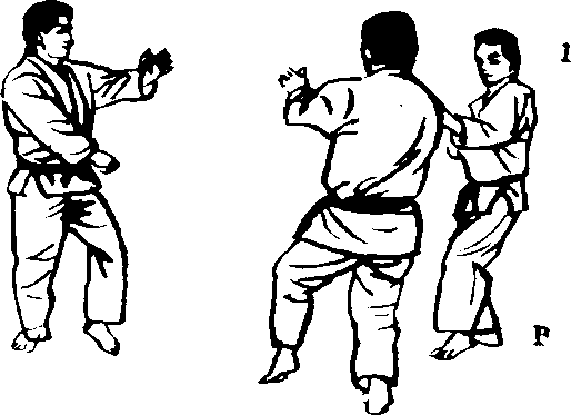 2. A以左前屈逆突攻 击,这时,我要快一步 相反地以左脚前进,使 出上段突击招式。