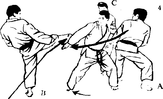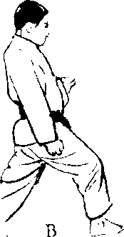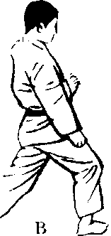 腰部完全朝向对方 的一侧。B改变架式, 凋整踢技的态势。