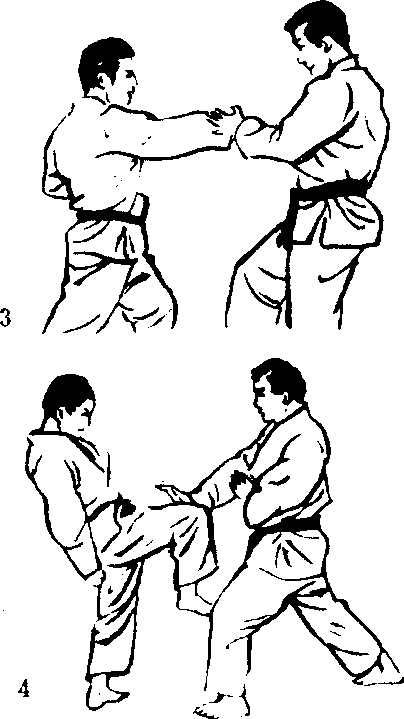 如图4,也能抓住 对方的踢出的脚,挤压 并向上托起。托起的部 位,以后脚跟或阿奇里 斯腱为佳。