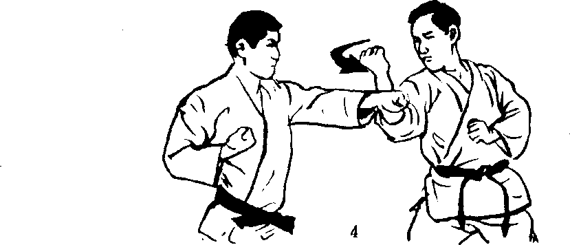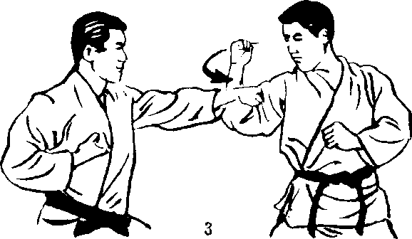 挡时不要把小手弹 开,引出对方的力气, 到图3位置时,和对方 的前臂接触的同时,把 手臂和手腕朝内侧扭转, 以便阻挡对方的突击。