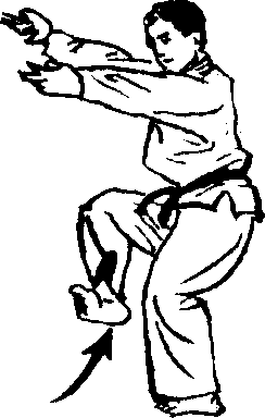 以右三战立的后脚, 准备前踢的招式。