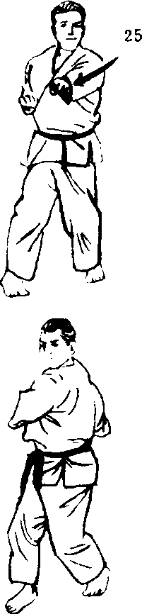 24. 右三战立,左中段 正拳