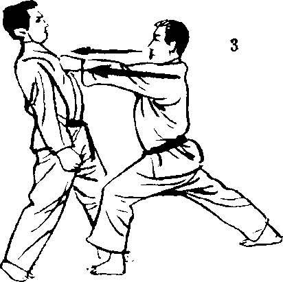 3. 双手恢复拉手,朝 对方的胸部,使出双手 正拳突。