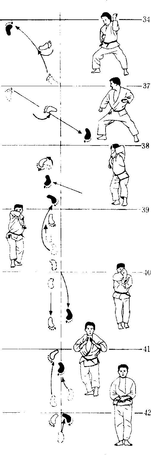 无论如何,这种套路的演练对于黑带段位者来说,也不算 简单。所以,三级的人只要练习大略的技法,要等晋升段位之 后,再练习细节。