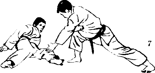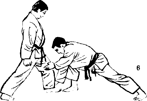 5以左手推,並以右手象要托起对方脚一般,扳倒对方,同时右手朝...