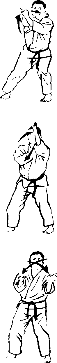 对方走近自己时, 要慢慢收回四股立的右 脚,摆出架式。