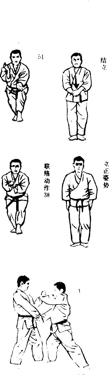 左脚回到结立架式 结立,保护要害 立正姿势