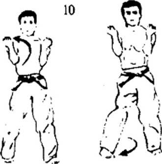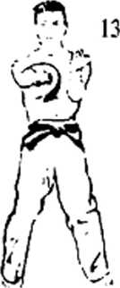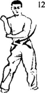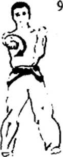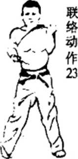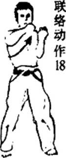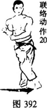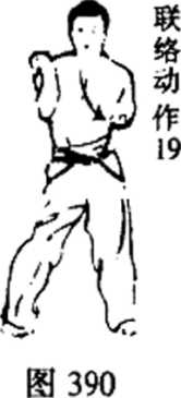(11) 右=战立,左横击(图391)在联络动作(19)时吸气,使 出12的突技时呼气,