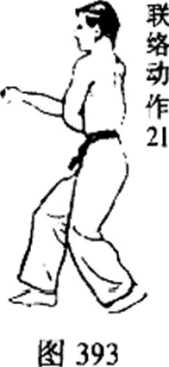 图394从联络动作(21)起,是从南方观察的图。和从(8?9)由南到北使出正拳的动作完全相同,只是方 向改为