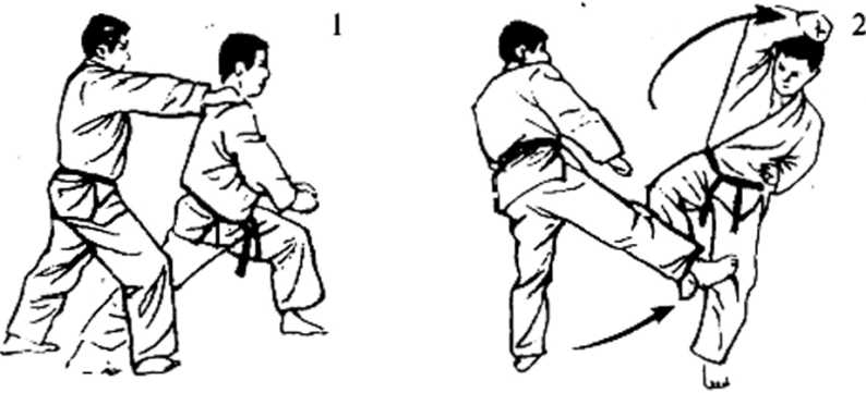(3) 2双手恢复拉手,朝对方的胸部,使出双手正拳突 m 690),