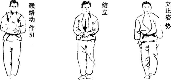 B3 790图791图792一而吸气,一面收四左脚,改摆结立的架式,双手交叉、结 立,保护要害,呼吸(图792)a