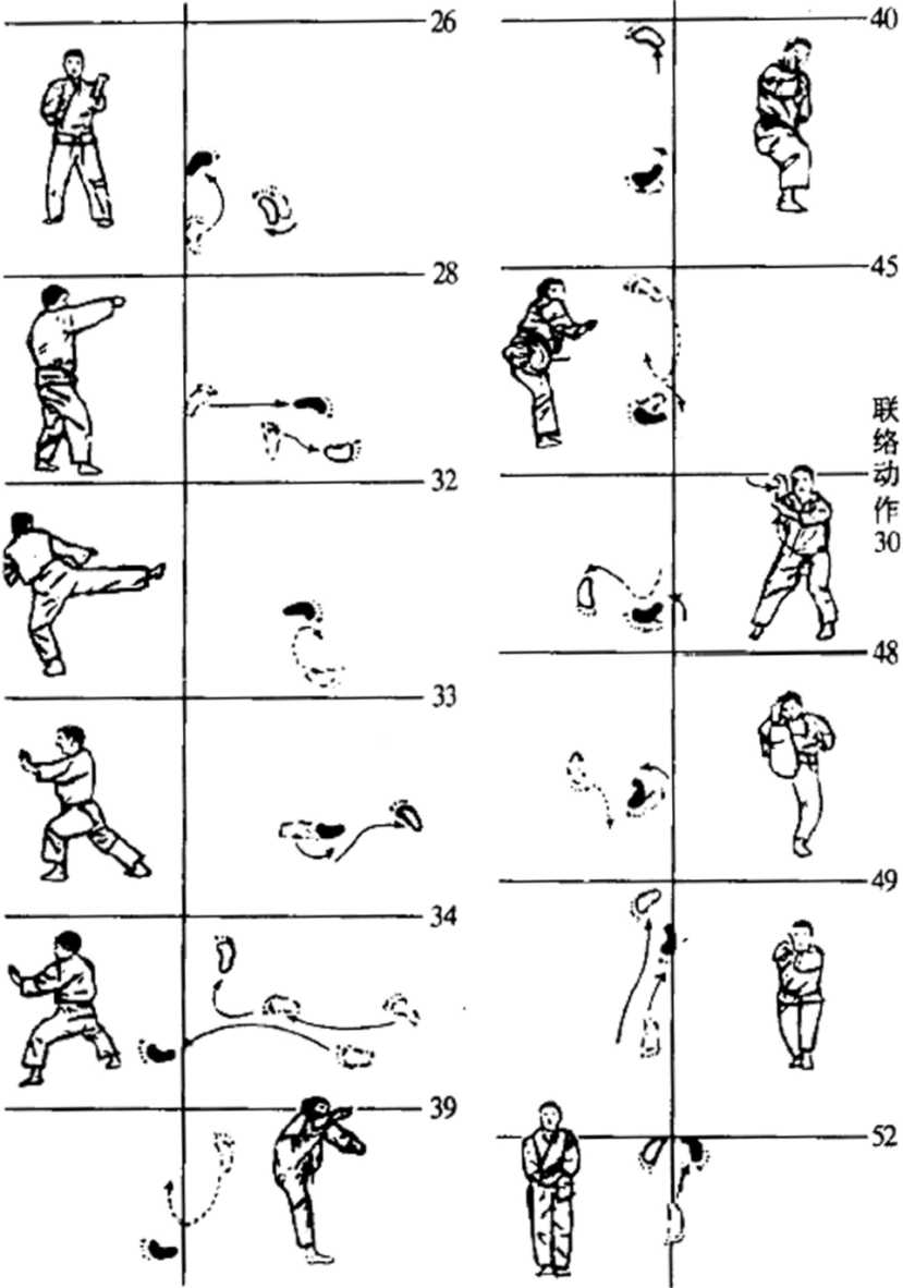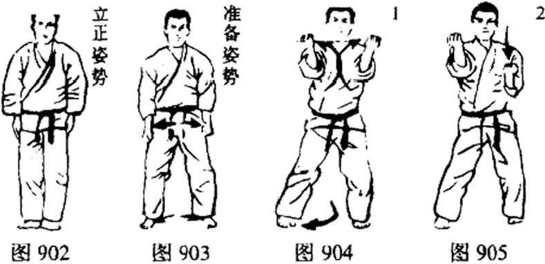 十^手,很少像其它套路含有&左右对称”的招式,其特点 是前后左右四面的攻击和防守招式各不相同。(图901)