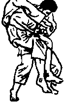 (4)放开抓着对方右袖子的左手从对方的右侧伸出配合右手,抱住对方的腰部弯曲二膝盖,使对方的腰部能够移到我方的下腹部。