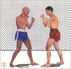 格斗双方正面交锋彼此以左前势格斗站架应敌伺机而动。